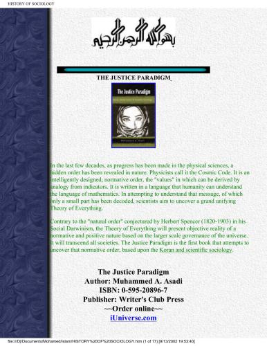 ” قرآن خود را به عنوان راهنمای با مدرک و معیار (قرآن 2: 185) از خالق همه چیز، تا نوع بشر، حامل امانت خدا بر روی زمین و حفظ کننده تعادل معرفی می کند. 55: 7-9) که خدا آفرید. اما بشریت با رویگردانی از آن امانت و کوتاهی در تعادل و هدر رفتن زیاد، مشکلات اجتماعی زیادی ایجاد کرده است، مشکلاتی که به طور کلی به جامعه آسیب می رساند و نه تنها به کسانی که مسئول مستقیم آنهاست (قرآن 8:25) این جبر عرفانی نیست بلکه جبر اجتماعی است که قرآن از آن صحبت می کند. مسیری [سبیل به عربی] از کنشهای اجتماعی مختلف که به اهدافی مضر [یا سودمند] منتهی میشود. این تا حدودی شبیه به “تحلیل مسیر” است که توسط جامعهشناسان مدرن استفاده میشود”