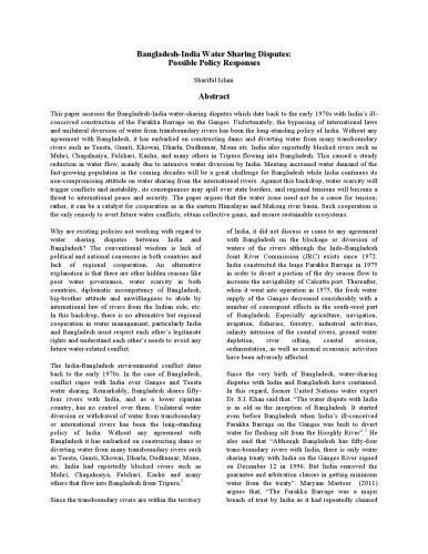 | عنوان اصلی | Bangladesh-India Water Sharing Disputes |