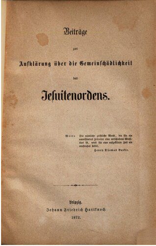 | عنوان اصلی | Beiträge zur Aufklärung über die Gemeinschädlichkeit des Jesuitenordens |