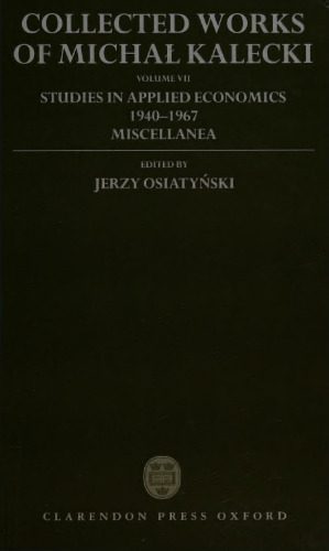 عنوان اصلی Collected Works of Michał Kalecki. Vol. VII: Studies in Applied Economics 1940-1967. Miscellanea