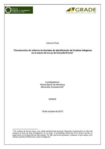 ایجاد معیارهای سرزمینی برای شناسایی مردم بومی در چارچوب قانون مشاوره قبلی (پرو). گزارش نهایی |