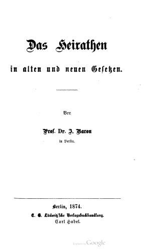 عنوان اصلی Das Heirathen [Heiraten] in alten und neuen Gesezen