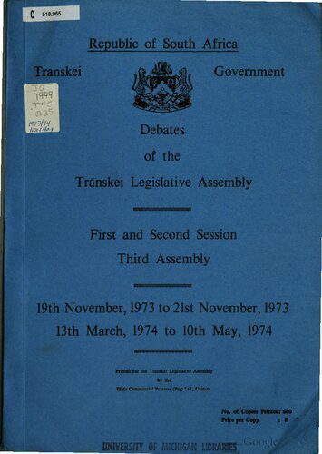 خرید و دانلود نسخه کامل کتاب Debates of the Transkei Legislative Assembly. First and Second Session. Third Assembly. 19th November, 1973 to 21st November, 1973. 13th March, 1974 to 10th May, 1974