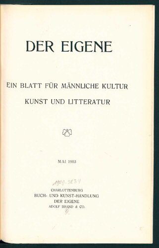 | عنوان اصلی | Der Eigene: Ein Blatt für männliche Kultur, Kunst und Litteratur, Mai 1903 |