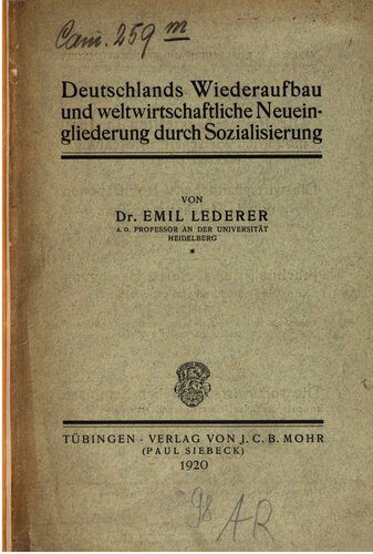 خرید و دانلود نسخه کامل کتاب Deutschlands Wiederaufbau und weltwirtschaftliche Wiedereingliederung durch Sozialisierung