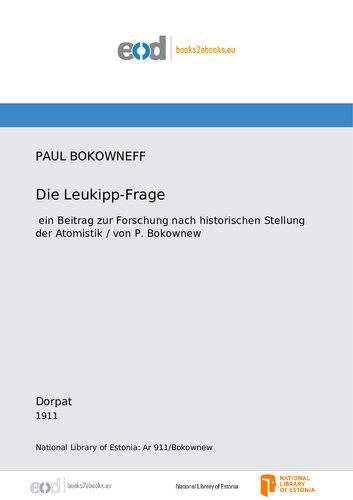 خرید و دانلود نسخه کامل کتاب Die Leukipp-Frage : ein Beitrag zur Forschung nach der historischen Stellung der Atomistik