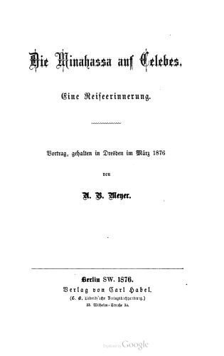 Minahassa در Celebes. یک حافظه سفر سخنرانی ، که در مارس 1876 در درسدن برگزار شد |