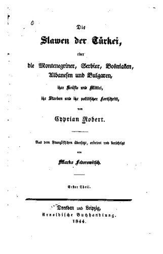 عنوان اصلی Die Slawen der Türkei, oder die Montenegriner, Serbier, Bosniaken, Albanesen und Bulgaren, ihre Kräfte und Mittel, ihr Streben und ihr politischer Fortschritt