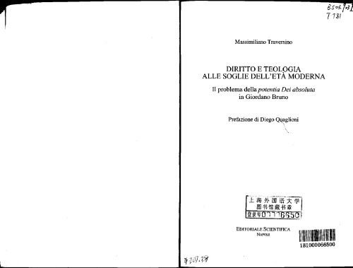 خرید و دانلود نسخه کامل کتاب Diritto e Teologia alle Soglie dell’Età Moderna: Il Problema della potentia Dei absoluta in Giordano Bruno