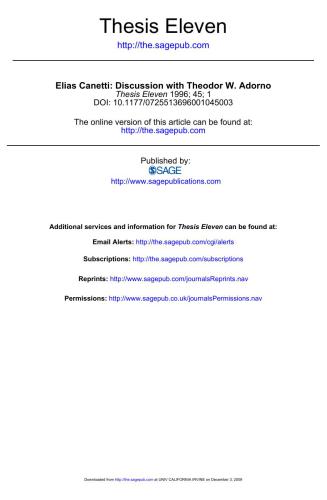 مکالمه بین تئودور آدورنو و الیاس کانتی پس از انتشار کتاب انبوه و قدرت توسط کانتی در سال 1960. آدورنو درباره روابط نزدیک و نزدیک می پرسد. قدرت، بقا و حفظ خود، و ایده او از “جمعیت نامرئی”. آدورنو با این اظهار نظر شروع می‌کند که آثار انسان‌شناختی کانتی نظریه‌ای را که معمولاً نادیده گرفته می‌شود، درباره جامعه انسانی و ساختارهای قدرت آن آشکار می‌کند. این مقاله به منظور تشخیص مشکلات کلیدی جامعه معاصر پس از جنگ جهانی دوم بود.