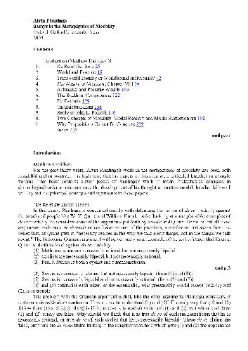 این مقالات، از اواخر دهه 1960 تا به امروز، توسعه افکار پلانتینگا را در مورد برخی از اساسی ترین مسائل در متافیزیک شرح می دهند: ماهیت اشیاء انتزاعی مانند جهان های ممکن، ویژگی ها، گزاره ها و پدیده هایی از این قبیل چیست؟ آیا اشیاء ممکن اما غیر واقعی وجود دارد؟ آیا اشیایی که وجود ندارند می توانند خصوصیات را مثال بزنند؟ پلانتینگا به این سوالات و سوالات دیگر پاسخ های کامل و نافذ می دهد.