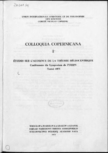 عنوان اصلی Etudes sur l’audience de la theorie heliocentrique