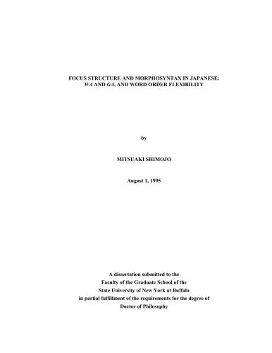 | عنوان اصلی | Focus Structure and Morphosyntax in Japanese |