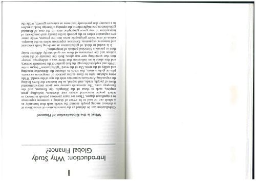 شامل فصل‌هایی در مورد بانکداری، بازارهای اوراق بهادار، سرمایه‌گذاری مستقیم خارجی، اقتدار خصوصی، نقش کشورهای در حال توسعه و در حال گذار، جامعه مدنی جهانی، جنسیت، سیاست‌های ریسک و بحران‌های مالی و دموکراسی است.