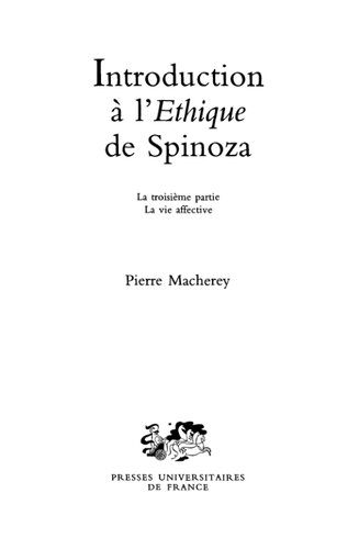 خرید و دانلود نسخه کامل کتاب Introduction à 1’Ethique de Spinoza La troisième partie La vie affective