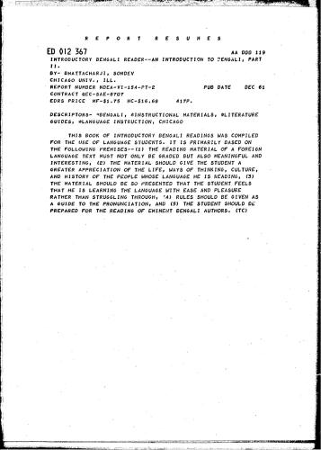 عنوان اصلی Introductory Bengali reader. An introduction to Bengali, part II