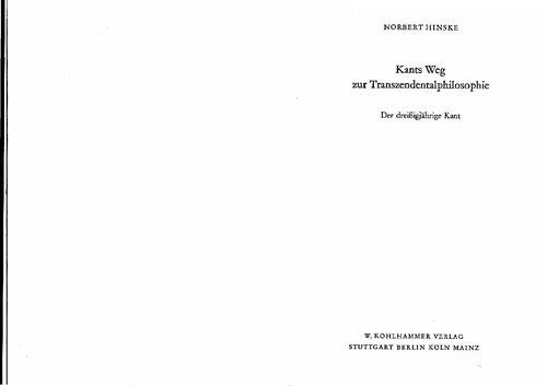 عنوان اصلی Kants Weg zur Transzendentalphilosophie. Der dreißigjährige Kant.