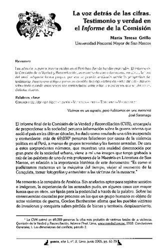 | عنوان اصلی | La voz detrás de las cifras. Testimonio y verdad en el Informe de la Comisión (CVR) |