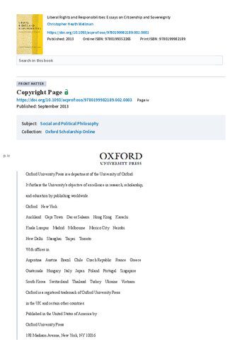 عنوان اصلی Liberal Rights and Responsibilities: Essays on Citizenship and Sovereignty