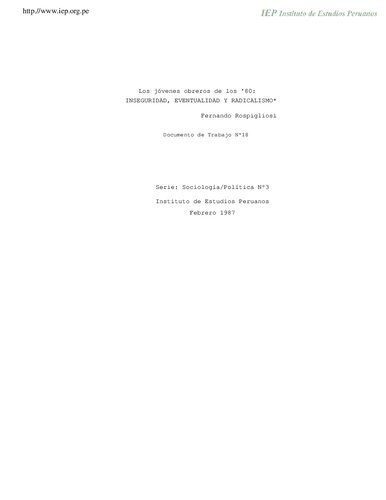 | عنوان اصلی | Los jóvenes obreros de los ’80: inseguridad, eventualidad y radicalismo (Perú) |