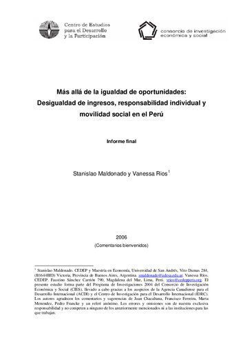 فراتر از فرصت های برابر: نابرابری درآمد، مسئولیت فردی و تحرک اجتماعی در پرو. گزارش نهایی |