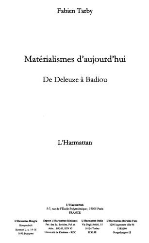 خرید و دانلود نسخه کامل کتاب Matérialismes d’aujourd’hui: de Deleuze à Badiou
