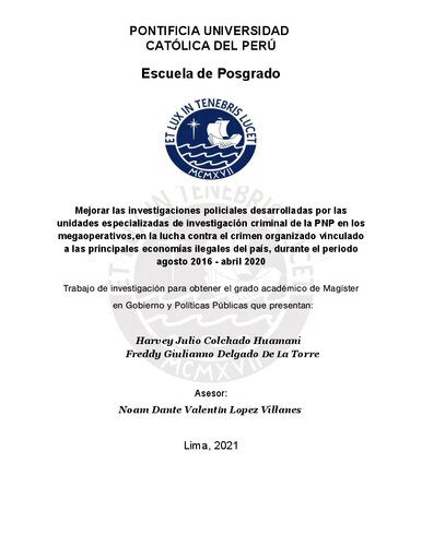 عنوان اصلی Mejorar las investigaciones policiales desarrolladas por las unidades especializadas de investigación criminal de la PNP [Policía Nacional del Perú] en los megaoperativos, en la lucha contra el crimen organizado vinculado a las principales economías ilegales del país, durante el periodo agosto 2016 – abril 2020