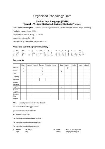 عنوان اصلی Organised Phonology Data. Umbu-Ungu Language [UMB]. Tambul – Western Highlands & Southern Highlands Provinces