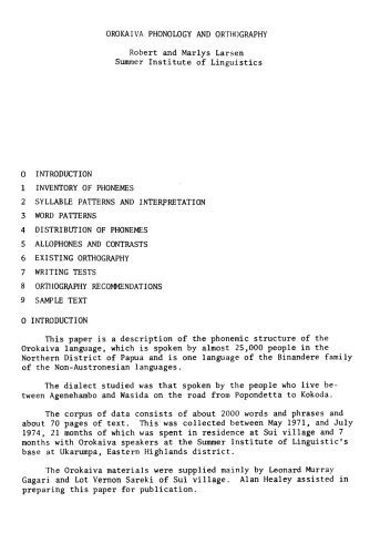 | عنوان اصلی | Orokaiva phonology and orthography |