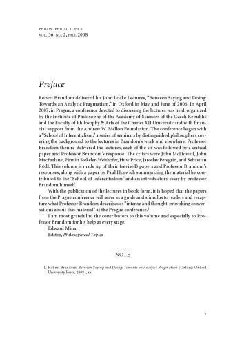 | عنوان اصلی | Philosophical Topics, Volume 36, Issue 2, Fall 2008 – On Between Saying and Doing (Robert Brandom’s John Locke Lectures Comments and Responses) |