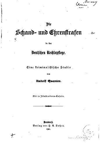 خرید و دانلود نسخه کامل کتاب Schand- und Ehrenstrafen in der Deutschen Rechtspflege; eine kriminalistische Studie