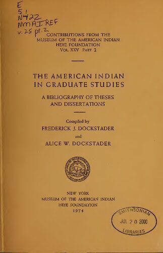 خرید و دانلود نسخه کامل کتاب The American Indian in graduate studies : a bibliography of theses and dissertations