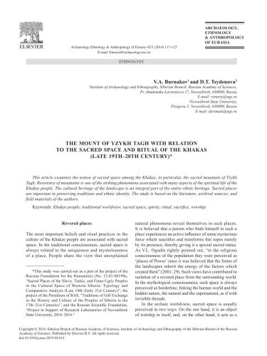 | عنوان اصلی | The mount of Yzykh tafh with relationto the sacred space and ritual of the khakas (late 19th-20th century) |