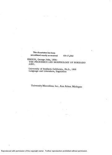 | عنوان اصلی | The phonemics and morphology of Hokkaido Ainu |