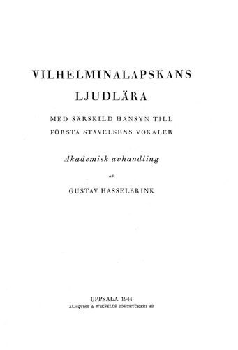 | عنوان اصلی | Vilhelminalapskans ljudlära, med särskild hänsyn till första stavelsens vokaler |