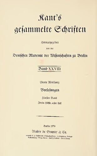 خرید و دانلود نسخه کامل کتاب Vorlesungen / Vorlesungen über Metaphysik und Rationaltheologie : Zweite Hälfte