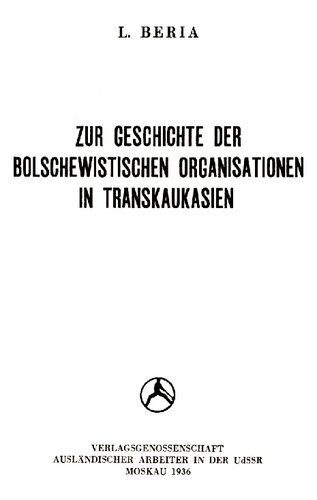 خرید و دانلود نسخه کامل کتاب Zur Geschichte der Bolschewistischen Organisationen in Transkaukasien