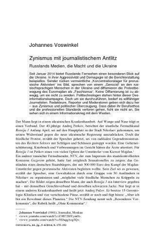 | عنوان اصلی | Zynismus mit journalistischem Antlitz : Russlands Medien, die Macht und die Ukraine |