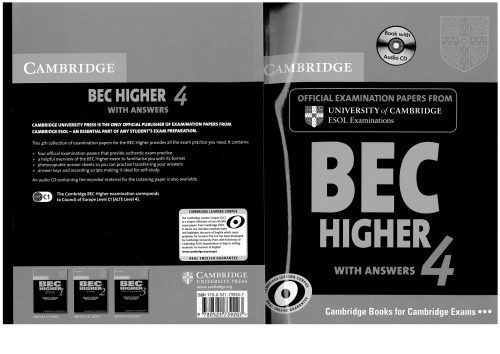 Cambridge BEC 4 Higher مجموعه ای از چهار تست تمرینی کامل را برای آزمون کمبریج BEC Higher ارائه می دهد. این مقالات امتحانی گذشته از دانشگاه کمبریج ESOL Examinations (کمبریج ESOL) معتبرترین آمادگی آزمون موجود را ارائه می دهد. آنها به داوطلبان این امکان را می دهند که با محتوا و قالب امتحان آشنا شوند و تکنیک های امتحانی مفیدی را تمرین کنند. کتاب دانشجو همچنین شامل بخش جامعی از کلیدها و رونوشت ها است که آن را برای مطالعه شخصی مناسب می کند.