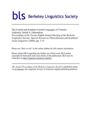 | عنوان اصلی | The Central and Southern Loloish languages of Vietnam |