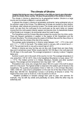 تصور کنید در طول اقامت خود در بریتانیا یا آمریکا باید اطلاعاتی در مورد آب و هوای کشور خود ارائه دهید. در مورد ویژگی های آب و هوا در اوکراین بگویید. هنگام آماده شدن برای امتحان زبان انگلیسی در دبیرستان و همچنین برای نوشتن مقاله مفید است.
