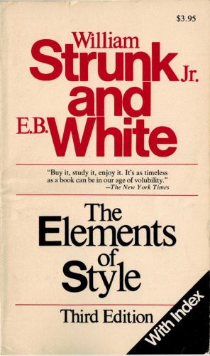 The Elements of Style یک راهنمای سبک نوشتاری انگلیسی آمریکایی در نسخه های متعدد است. نسخه اصلی توسط ویلیام استرانک جونیور در سال 1918 ساخته شد و توسط هارکورت در سال 1920 منتشر شد که شامل هشت “قوانین ابتدایی استفاده”، ده “اصول ابتدایی ترکیب”، “چند موضوع شکل” است. “، فهرستی از 49 “کلمات و عباراتی که معمولاً به اشتباه استفاده می شوند”، و لیستی از 57 “کلماتی که اغلب غلط املایی دارند”. E. B. White کتاب را برای انتشار توسط مک میلان در سال 1959 بسیار بزرگ کرد و تجدید نظر کرد. این اولین نسخه موسوم به “Strunk & White” بود که تایم در سال 2011 آن را یکی از 100 کتاب برتر و تأثیرگذار نوشت. انگلیسی از سال 1923.[2]