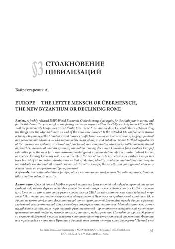 عنوان اصلی Europe – the letzte Mensch or Übermensch, the new Byzantium or declining Rome