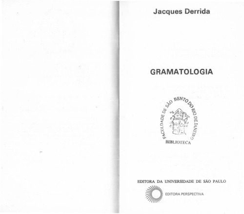 ژاک دریدا امروزه یکی از نماینده ترین چهره های اندیشه فلسفی فرانسه در دوره پساساختارگرایی است. این اثر او – دومین اثری که توسط پرسپکتیوا، پیشگام در انتشار نویسنده در برزیل، به پرتغالی ترجمه شد – به مرجعی اجباری در بحث انتقادی درباره کل تفکر غربی تبدیل شده است که در کتاب به عنوان «لوگوسنتریسم» نامگذاری شده است. شکل‌گیری دستور زبان (یا علم امکان علم) با هدف شکستن این شرط «معنا محوری» است که در یک مفهوم دقیق از «نوشتن» حفظ و تغذیه می‌شود. نویسنده در جست‌وجوی مفهومی وسیع‌تر که دربرگیرنده‌ی یک سیستم کلی باز برای همه‌ی بارهای ممکن از معانی است، یک بار دیگر شکل/محتوای مخالف قابل بحث را زیر سوال می‌برد و آن را به‌ویژه بررسی می‌کند که دوباره در زبان‌شناسی از سوسور ظاهر می‌شود. Troubetzkói، Jakobson، Martinet، Halle، Hjelmslev نام‌هایی هستند – در میان دیگران – که از قدردانی شدید انتقادی او دور نیستند.