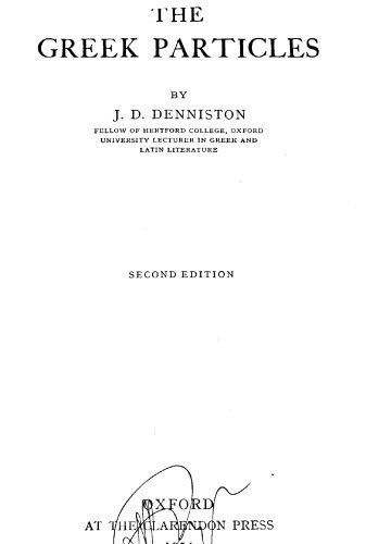 این نسخه اصلاح شده شامل نمونه های اضافی از نویسنده اصلی در ارتباط با K.J. مواد خود دوور. در ارائه اولین نسخه (1934)، دنیستون تصمیم گرفت بحث ریشه شناسی را که مشخصه پیشینیان آلمانی او در این زمینه بود، کاهش دهد. او می‌خواست نشان دهد که ذرات چگونه کار می‌کنند و چگونه زبان یونانی را در مجموعه آثار باقی‌مانده تغییر می‌دهند. هدف اصلی او “ادبی بود، نه دستوری یا ریشه شناختی”. با در نظر گرفتن این موضوع، او مثال زدن را کلید می‌دانست و بسیار بیشتر از پیشینیانش به این باور استناد می‌کرد که «خواننده باید بتواند در مثال‌ها غسل کند». هنگامی که دنیستون درگذشت (1949) یادداشت های فراوانی از خود به جای گذاشت – نمونه های اضافی، تغییر ذهن در پرتو مطالب تازه. اینها توسط K.J. دوور در چاپ دوم (1950) با مطالب جدید خودش و افزودن نمایه ها.