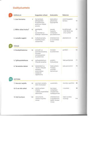موفق باشید! 2 کتاب درسی، نقطه شروع تدریس موقعیت های استفاده روزمره از زبان و مهارت های ارتباطی است. هدف از یادگیری مهارت های زبانی کاربردی است. متون کتاب رنگ و بوی زندگی دارد و واژگان روزانه فراوانی را در خود جای داده است. تکالیف همه کاره و متنوع هستند – هر فصل دارای وظایف نوشتاری و تمرین درک مطلب است. آموزش گرامر پیشرفت متوسطی دارد. خوب انجام دادن! مناسب برای بزرگسالانی که فنلاندی را به عنوان یک زبان خارجی مطالعه می کنند، همچنین برای خودآموزی.