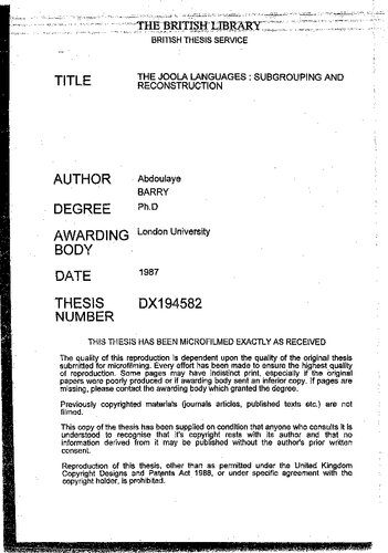 عنوان اصلی The Joola Languages: Subgrouping and reconstruction