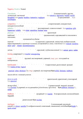 ویژگی های شخصیت. منفی، مثبت، خنثی. واژگان با رونویسی آورده شده است.