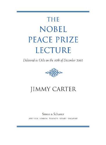 در سال 2002، جیمی کارتر، رئیس جمهور، جایزه صلح نوبل را به دلیل تلاش های اختصاصی خود برای راه حل های صلح آمیز برای پیشبرد حقوق بشر دریافت کرد و این سخنرانی الهام بخش را ارائه کرد – که اکنون به صورت کتاب الکترونیکی منتشر شده است. در 11 اکتبر 2002، کمیته نوبل نروژ اعلام کرد که برنده جایزه صلح نوبل برای سال 2002 جیمی کارتر است، و او اولین برنده آمریکایی تبار پس از دریافت جایزه مارتین لوتر کینگ جونیور در سال 1967 است. رئیس جمهور جیمی کارتر در 10 دسامبر 2002 جایزه صلح نوبل را دریافت کرد و این سخنرانی الهام بخش را ارائه کرد.