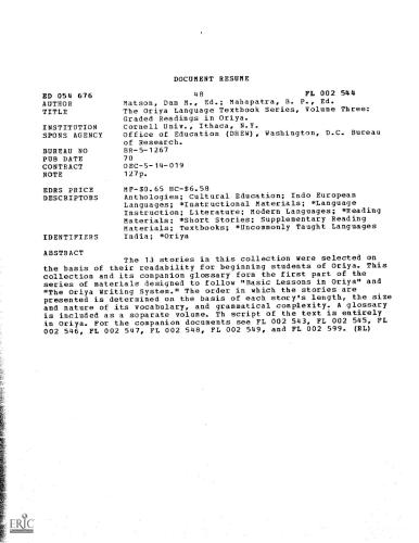 | عنوان اصلی | The Oriya Language Textbook Series, Volume Three: Graded Readings in Oriya |